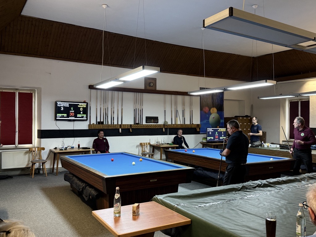Der Auftakt am Samstag gegen Kassel hielt, was er versprach. In vier intensiven und hart umkämpften Partien schenkten sich beide Teams nichts. Am Ende stand ein leistungsgerechtes 4:4-Unentschieden auf dem Spielberichtsbogen. Besonders herausragend: Herbert „Jimmy“ Szivacz, der mit einem starken Einzeldurchschnitt von 1,379 glänzte. Nur denkbar knapp verpasste auch Lucas Egert ein weiteres Remis – es war ein Duell auf Augenhöhe bis zum letzten Stoß.