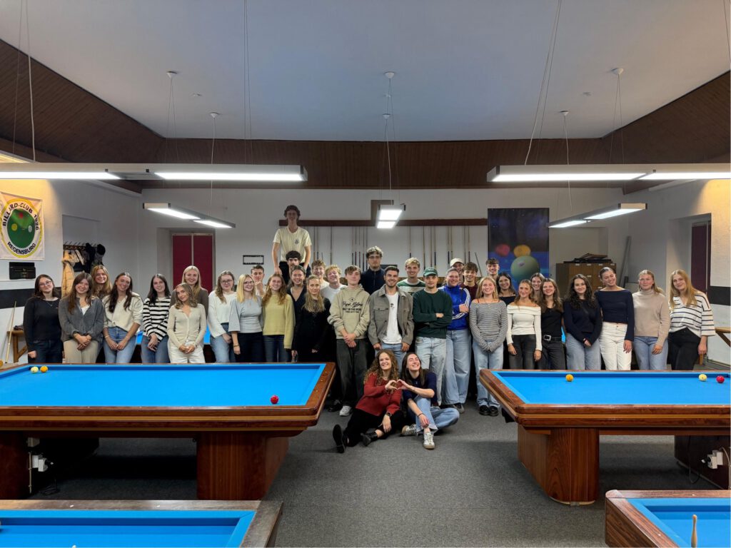 Am 12.10.25 von 18:00 Uhr – 21:00 Uhr durften wir die Studenten und Studentinnen der Fakultät Wirtschaftspsychologie der Uni Regensburg in unseren Räumen begrüßen. Unglaubliche 37 Billardinteressierte stellen sich in einem Event unser Billard-Challenge, welches von unseren Mitgliedern Roman, David und Ivan betreut wurde. Es wurden Grundlagen gelehrt, Stoßarten geübt und spannende Herausforderungen am Tisch ausprobiert.